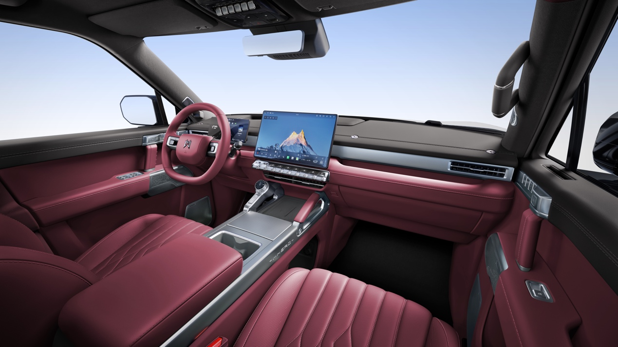 红韵映山河,猛士驭新春!猛士M817全新锦川红内饰配色正式上市,以酒红与黑色的经典碰撞,将锦绣山河的磅礴意境与新春喜庆氛围双双融入座舱空间,重新定义豪华智能越野的内饰美学与价值标杆。