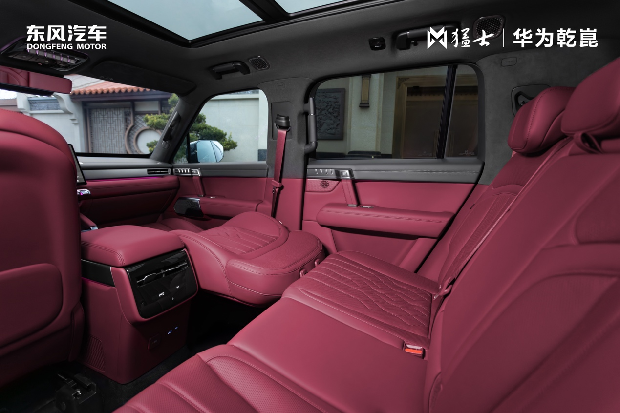 这份独特的诗意与年味,更为整个座舱注入了满满的豪华质感。猛士M817内饰以横平竖直线条搭配硬朗金属材质,中轴对称的布局延伸至车门把手,硬派基调中尽显规整大气;座舱91.2%的软包包覆,搭配顶棚与后备厢的高档绒质面料,无论是日常通勤的独处时光,还是新春团圆的阖家出行,触目所及、指尖所触皆是细腻与尊崇。